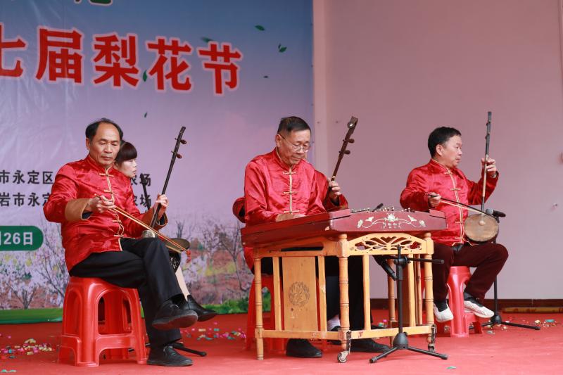 永定新聞網(wǎng)訊(廖金材 吳宇梁) “生態(tài)坑頭處處福澤毓美景,浪漫梨花悠悠雅韻迎賓朋?!?月18日,永定區(qū)湖山鄉(xiāng)漳溪村第七屆梨花節(jié)在坑頭自然村開(kāi)幕。這里,梨花競(jìng)相綻放,歌曲演唱、器樂(lè)彈奏、即興說(shuō)唱書(shū)畫(huà)表演等文化活動(dòng)輪番上演,好不熱鬧。從四面八方慕名而來(lái)的游客在看戲賞花之余,還有“浸水梨”“梨果酒”等眾多農(nóng)家土特產(chǎn)品可以選購(gòu)。
