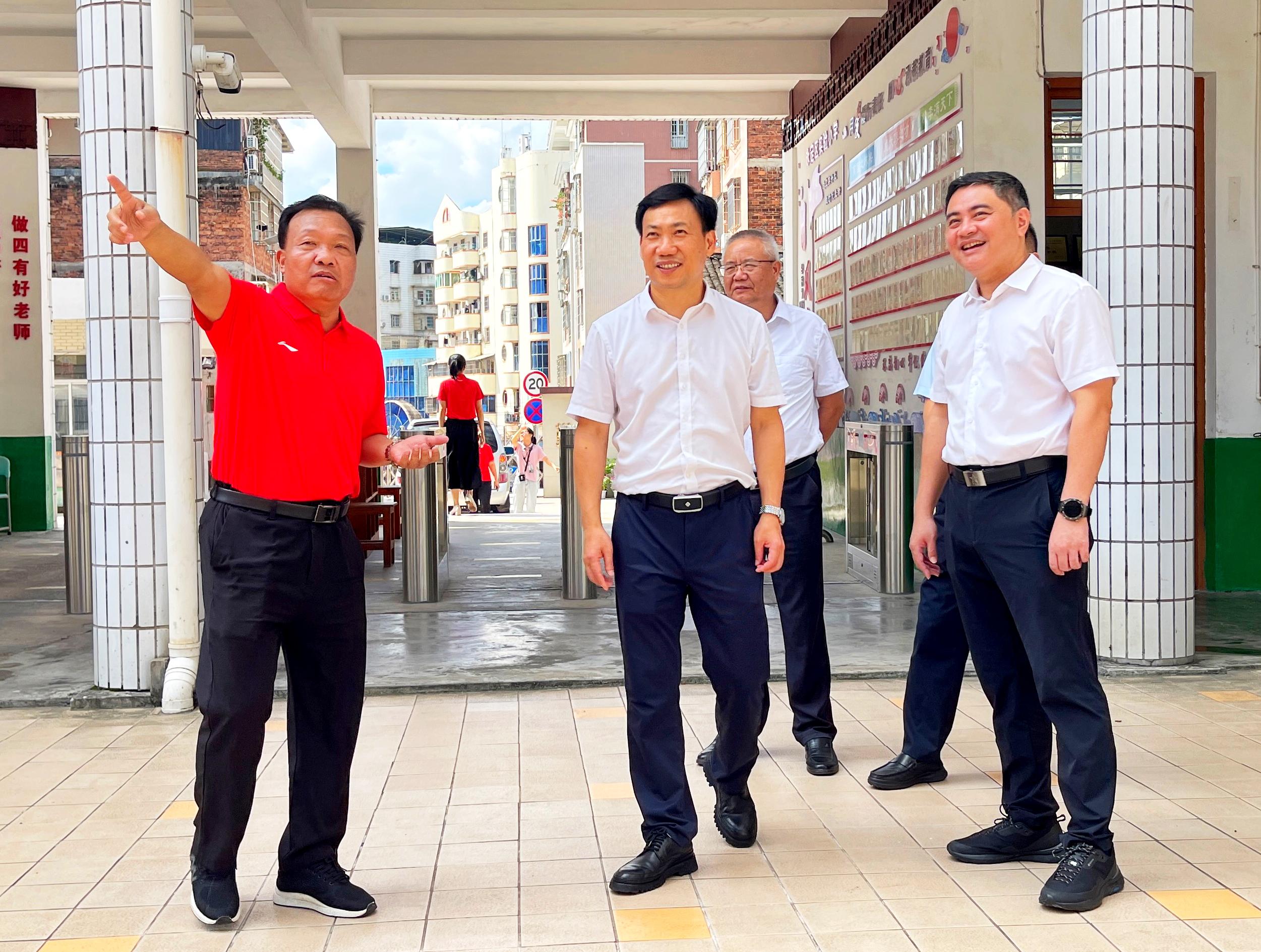 九月的校園,處處綠意盎然、繁花似錦,充滿勃勃生機。市領導一行先后來到僑榮職業中專學校、永定區實驗小學和永定一中,每到一處都與學校教師親切交談,詳細了解學校教育教學環境、辦學特色和師資配備等情況。