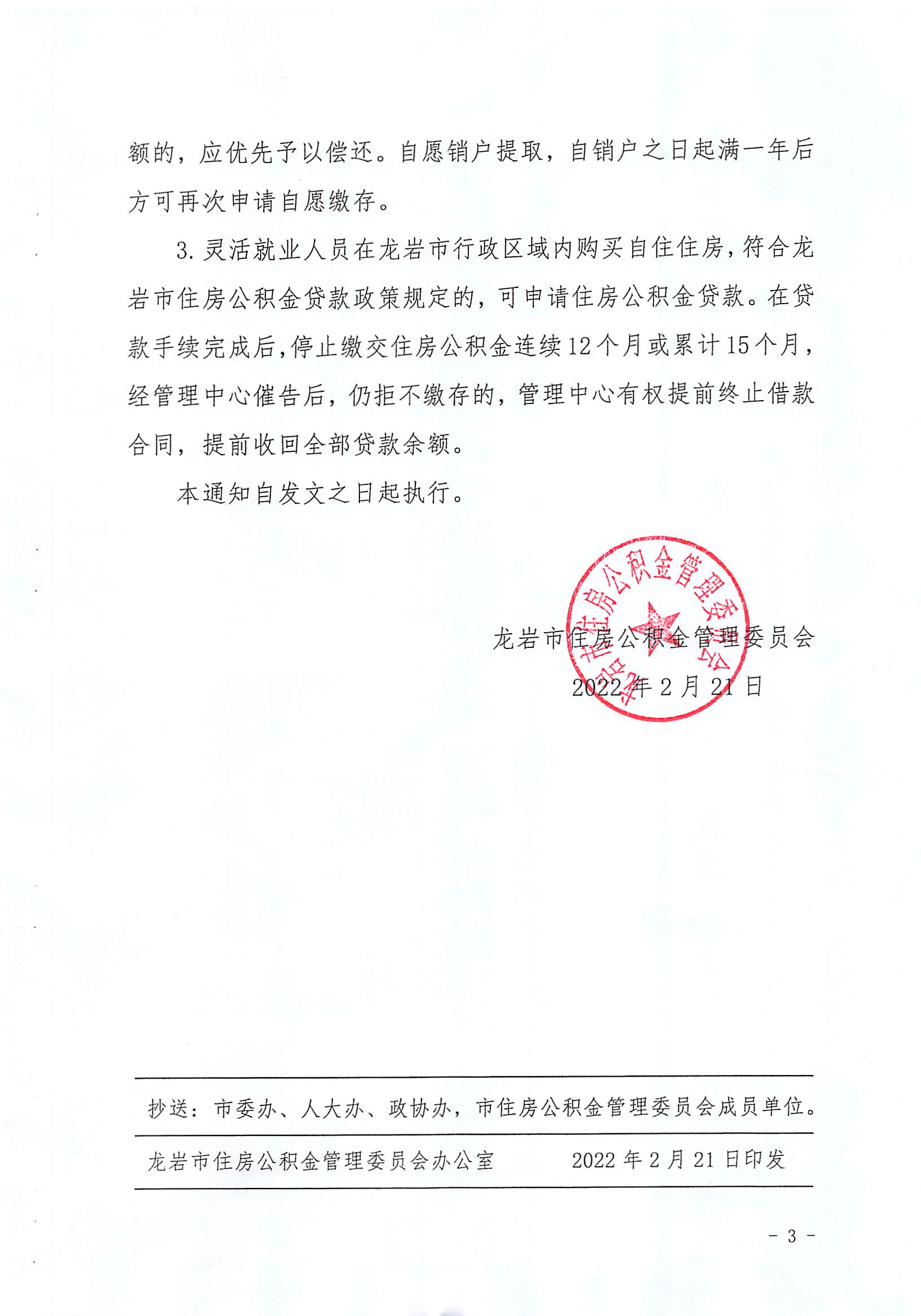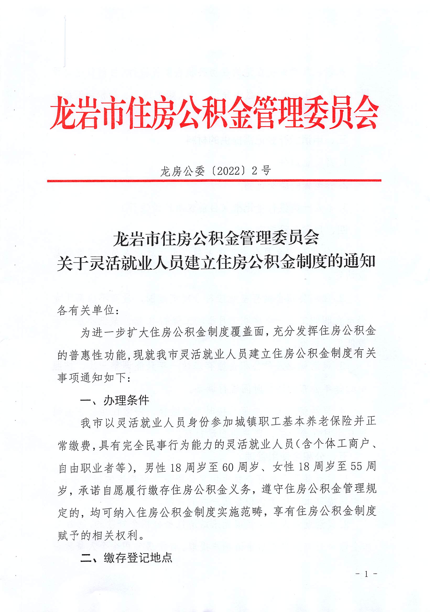 龍巖市住房公積金管理委員會關于靈活就業人員建立住房公積金制度的通知(龍房公委〔2022〕2號)