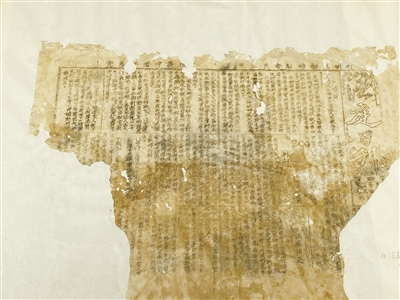 這個寶貝,是在一次文物普查的時候被發(fā)現(xiàn)的。當(dāng)時它被村民當(dāng)做一張糊墻的破紙貼在土墻上,毫不起眼。